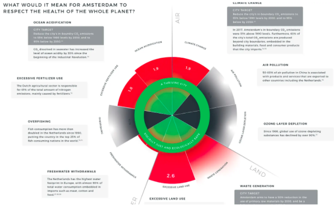 I’ve long been a fan of Kate Raworth’s Doughnut Economics and it was great to see this visual framework for sustainability prominently profiled in the course. Based on achieving a ‘social floor’ and staying within ‘ecological ceiling’, the ‘safe space’ for humanity is this middle part which makes a Doughnut shape. I was encouraged to see cities and businesses starting to properly implement this in their strategy. Images like these can act as a powerful guide.
