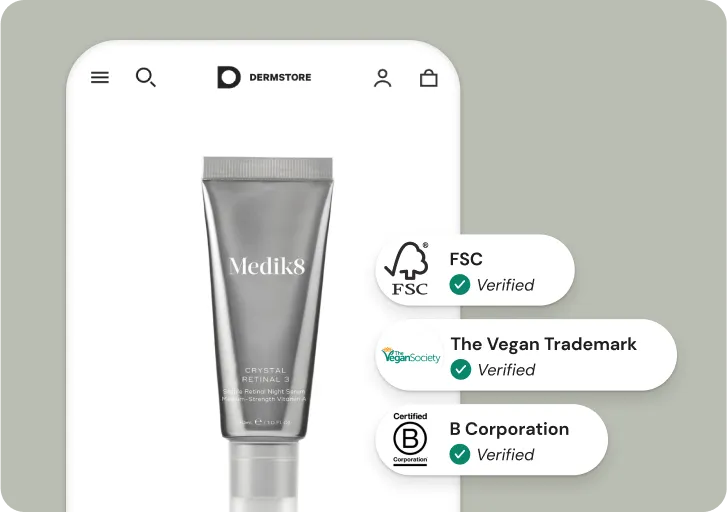 What’s more, partnering with Provenance allows you to do much more than publish your existing certifications. You can share an unlimited number of our 125+ social and environmental claims, from ‘Female-Founded’ to ‘Fully Compostable Packaging’, so that customers can see the range of your positive impact.