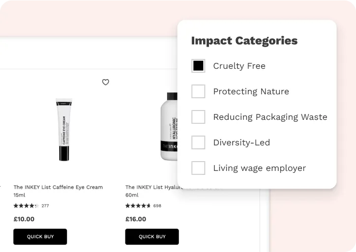 Harness purchase intent by increasing search & filter ranking and featuring in sustainability edits or SEO landing pages
