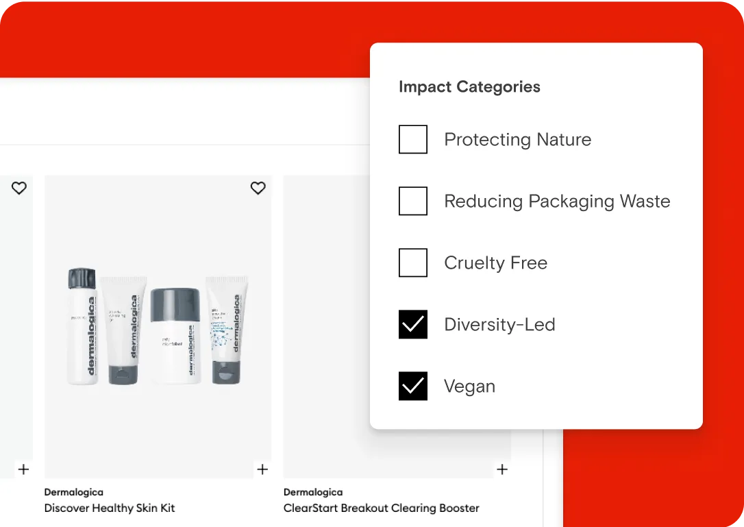 A dedicated M-PACTFUL Brands edit and sub-edits on mecca.com where customers can find the brands and products with verified claims.